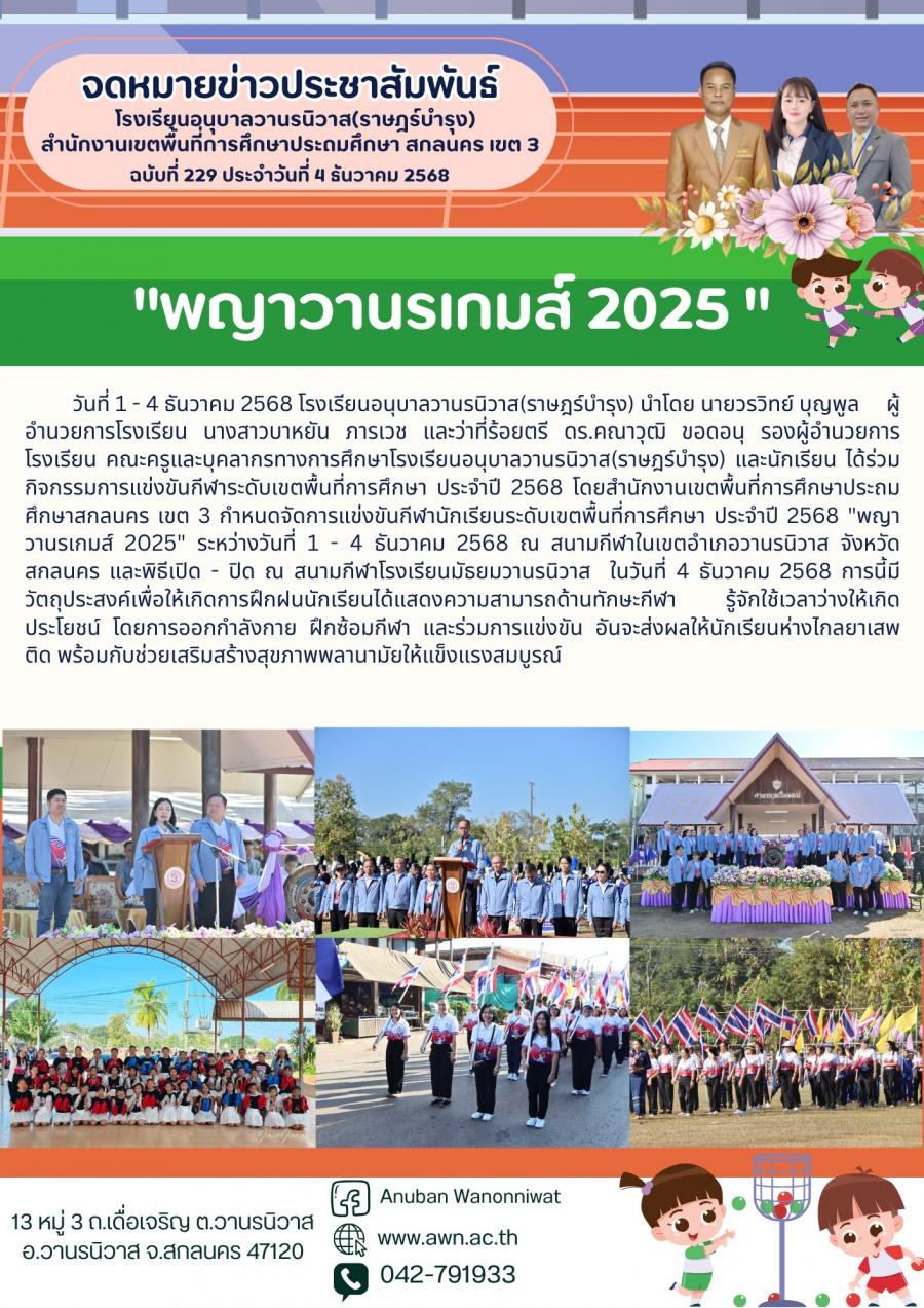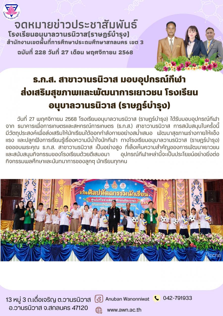 เป็นเจ้าภาพพิธีเปิดการแข่งขันกีฬาวอลเลย์บอล รุ่นอายุไม่เกิน 12 ปี อนุบาลวานรนิวาส ชลธิดา ตรงดีวอลเลย์บอลคัพ ครั้งที่ 1 ประจำปี 2568