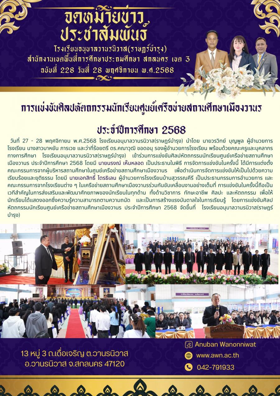 ร่วมกิจกรรมการแข่งขันกีฬาระดับเขตพื้นที่การศึกษา ประจำปี 2568 โดยสำนักงานเขตพื้นที่การศึกษาประถมศึกษาสกลนคร เขต 3