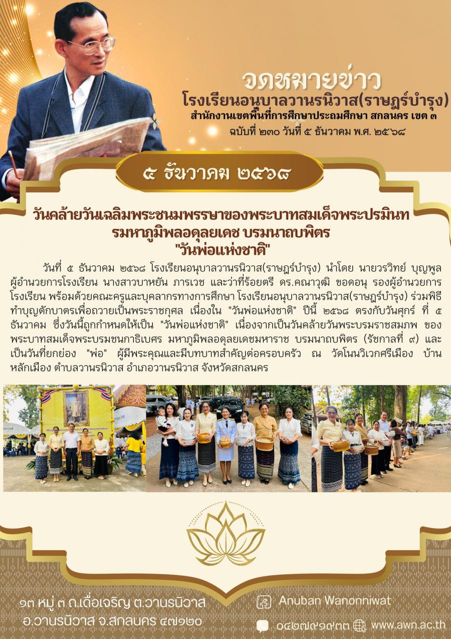 ร่วมพิธีทำบุญตักบาตรเพื่อถวายเป็นพระราชกุศล เนื่องใน วันพ่อแห่งชาติ ปีนี้ ๒๕๖๗ ตรงกับวันพฤหัสบดี ที่ ๕ ธันวาคม