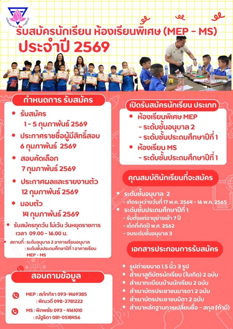 ประกาศรับสมัครนักเรียนห้องเรียนพิเศษ (MEP และ MS) ปีการศึกษา 2569
