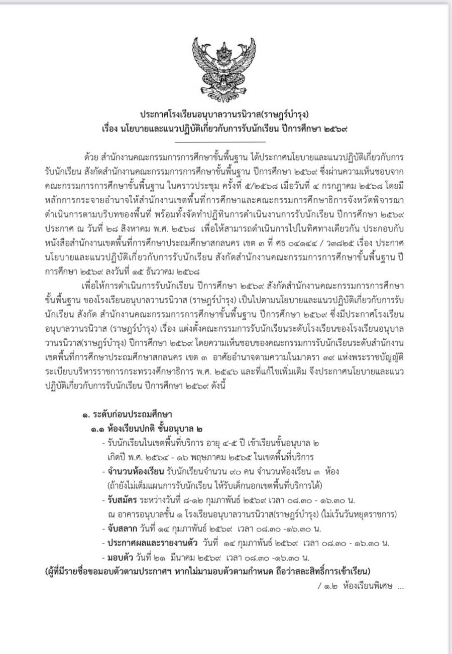นโยบายและแนวปฏิบัติเกี่ยวกับการรับนักเรียน ปีการศึกษา 2569
