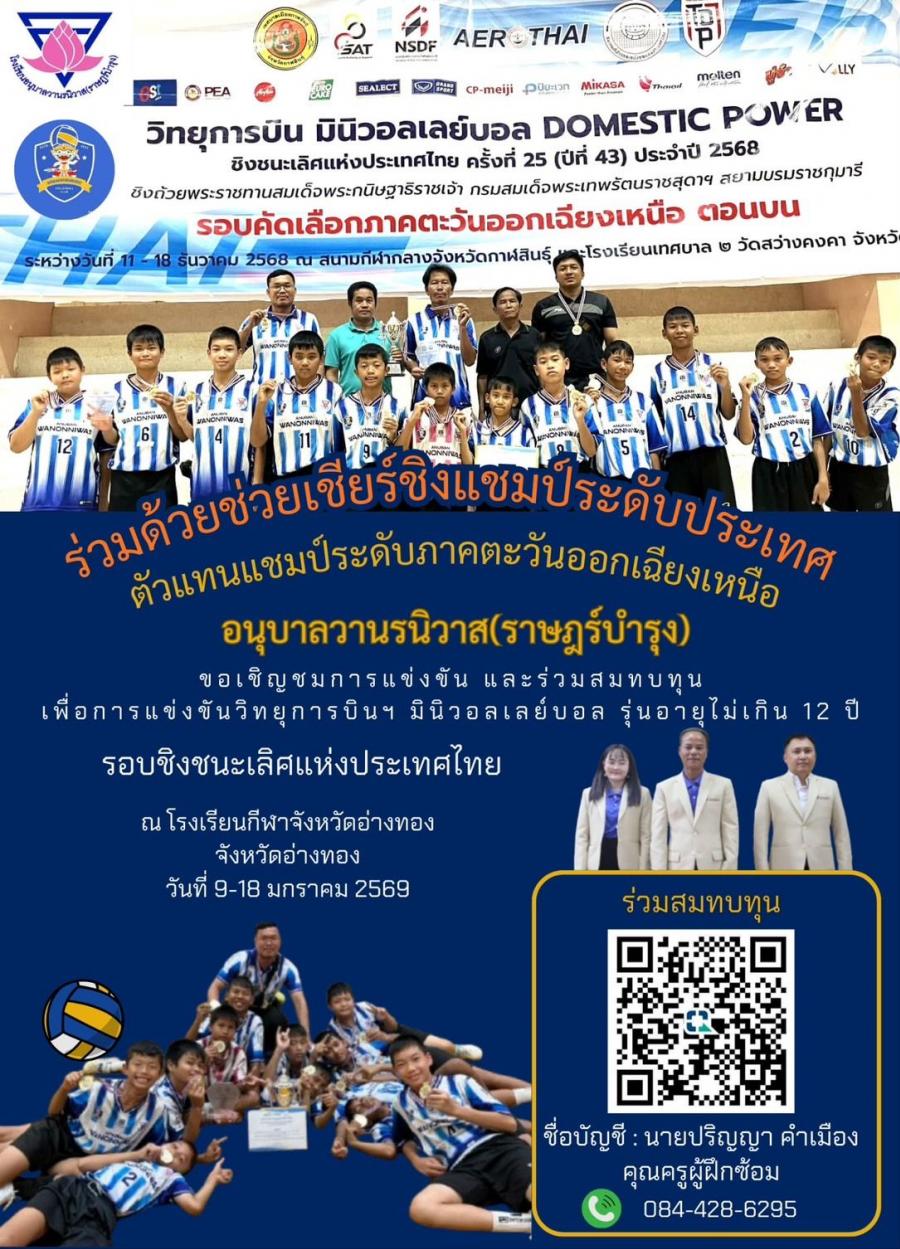 ร่วมชมถ่ายทอดสดวอลเลย์บอลนัดชิงชนะเลิศ ผ่านจอยักษ์ LED ณ หอประชุมโรงเรียนอนุบาลวานรนิวาส(ราษฎร์บำรุง) วันอาทิตย์ที่ 18 มกราคม 2569 เริ่มแข่งนัดชิงเวลา 12.00 น.เป็นต้นไป