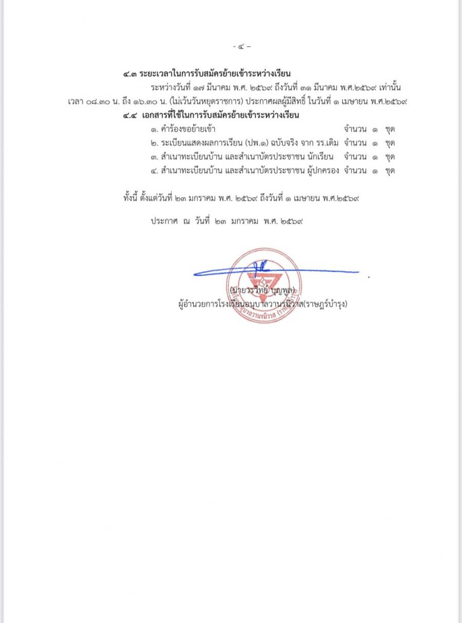 ประกาศรับสมัครนักเรียนห้องเรียนปกติ ปีการศึกษา 2569