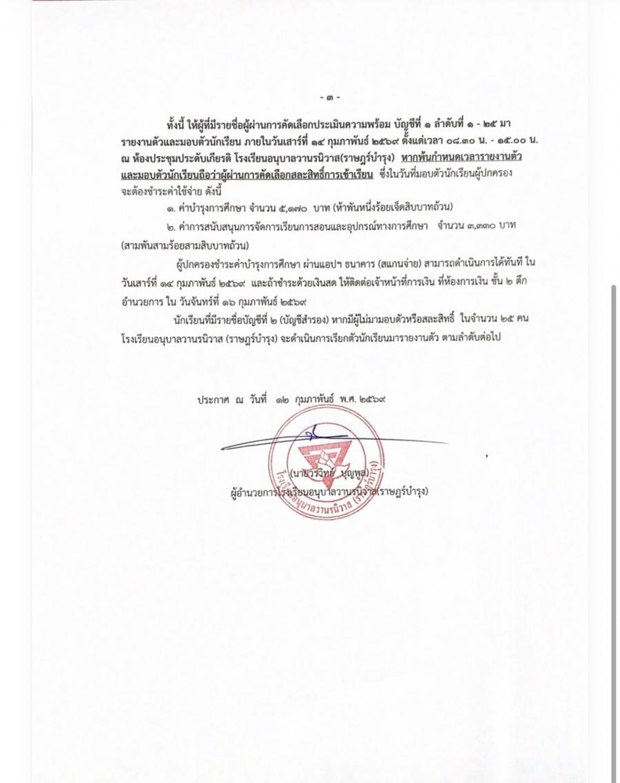 ประกาศรายชื่อนักเรียนผู้มีสิทธิ์เข้ารับการคัดเลือกประเมินความรพ้อมเข้าเรียน ชั้นประถมศึกษาปีที่ 1 MEP ปีการศึกษา 2569